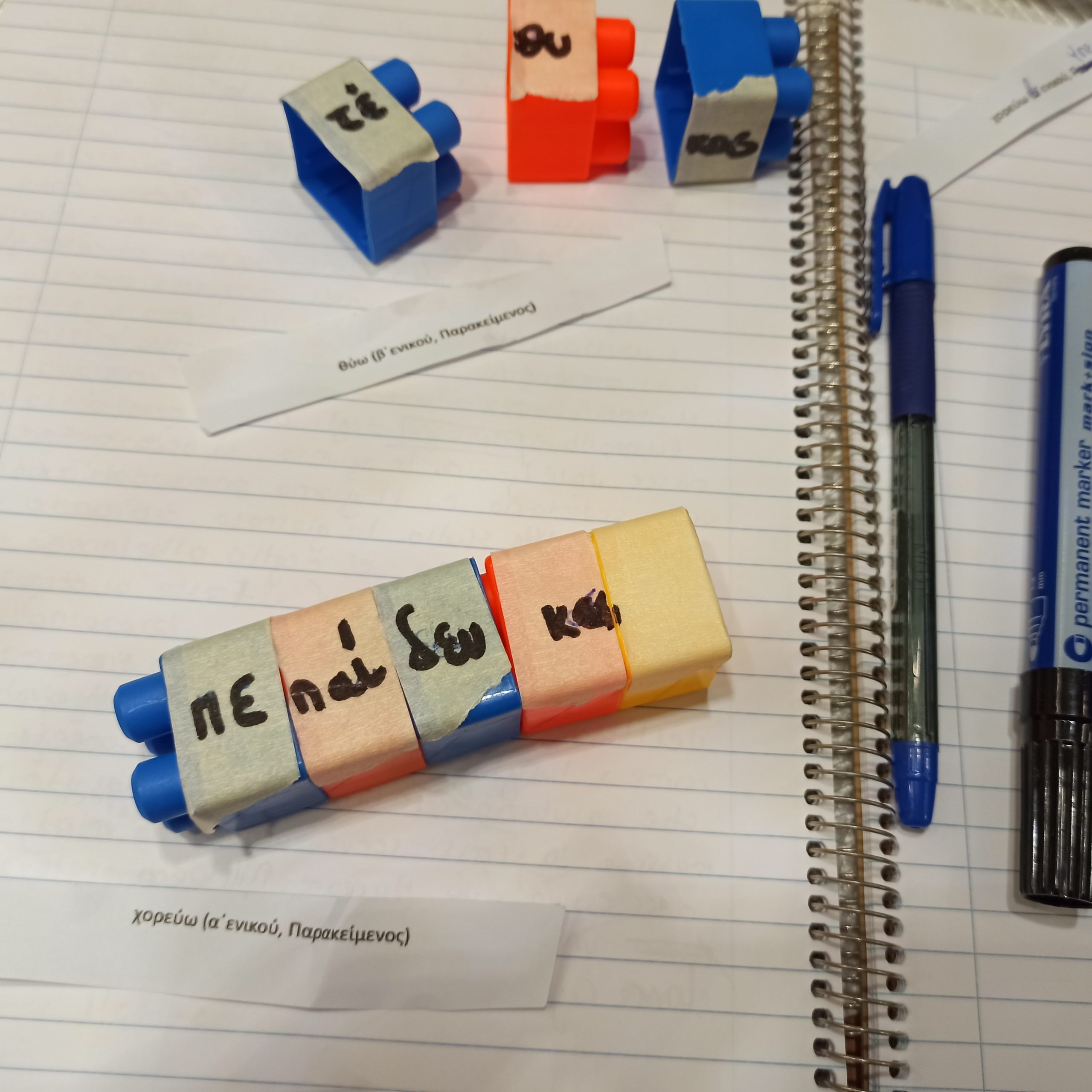 Ο τίτλος της μικροδιδασκαλίας ήταν: Οριστική Παρακειμένου και Υπερσυντελίκου ενεργητικής φωνής βαρύτονων ρημάτων. Κατά τη διδασκαλία έγιναν δραστηριότητες και ακολουθήθηκαν οι εκπαιδευτικές τεχνικές της εμπλουτισμένης εισήγησης, του καταιγισμού ιδεών, της ανάκλησης γνώσης και της άσκησης σε ομάδες. Ως εποπτικά μέσα χρησιμοποιήθηκαν η παρουσίαση, ο διαδραστικός πίνακας, το φύλλο εργασίας και το παιχνίδι. Με τα παραπάνω κινητοποιήθηκε το ενδιαφέρον των μαθητών και με την ολοκλήρωση της διδασκαλίας κατανόησαν τη χρήση και τον σχηματισμό των δύο χρόνων, προσεγγίζοντας «ολιστικά» την ελληνική γλώσσα.